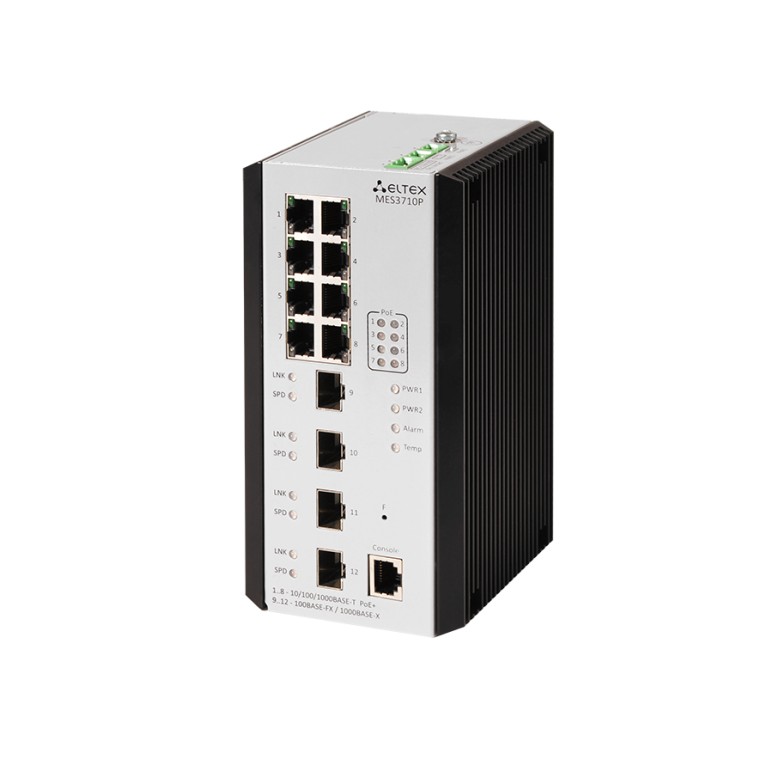 Промышленные коммутаторы MES3710P предназначены для организации защищенных отказоустойчивых сетей передачи данных на объектах, где необходимо выполнение требований по обеспечению устойчивости к воздействиям различного вида: температурным, механическим, вибрации и др. Данные коммутаторы имеют в своем составе гигабитные порты 10/100/1000BASE-T с поддержкой PoE/PoE+, а также порты 100BASE-FX/1000BASE-X (SFP).