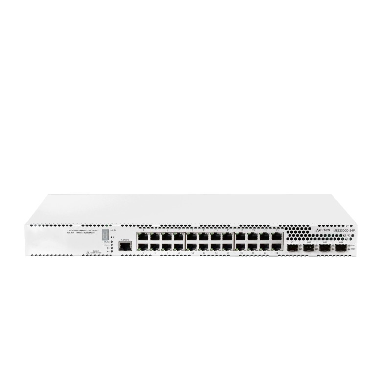 Коммутаторы MES2300D-24P с поддержкой PoE осуществляют подключение конечных пользователей к сети крупных предприятий, предприятий малого и среднего бизнеса и к сетям операторов связи с помощью интерфейсов 1G/10G.