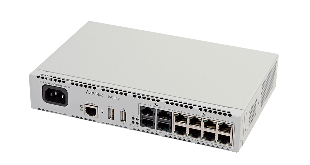 Сервисный маршрутизатор ESR-12V предназначен для использования в корпоративных сетях связи с целью подключения небольших и средних офисов компаний. Функциональность межсетевого экрана и маршрутизатора позволяет обеспечить безопасность при различных вариантах подключения через сеть Интернет.