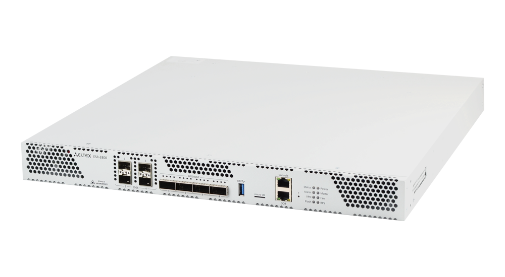 Сервисный маршрутизатор ESR-3300 — это устройство, представляющее собой универсальную аппаратную платформу и способное выполнять широкий круг задач, связанных с сетевой защитой, шифрованием передаваемых данных, терминированием пользователей и т. д.