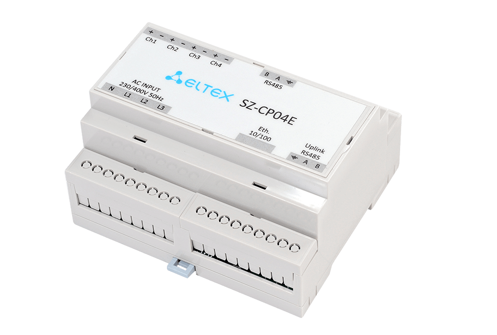 SZ-CP04EС – контроллер беспроводной сети «Умный дом» со встроенным регистратором потребления электроэнергии от приборов учета с импульсным выходом. Позволяет собирать данные с регистраторов SZ-P04C и SZ-W02 по беспроводному каналу и передавать их в платформу Eltex SC.