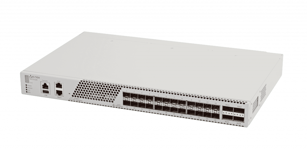 MES5324 - высокопроизводительный коммутатор, оснащенный интерфейсами 10GBASE-R, 40GBASE-SR4/LR4. Коммутатор предназначен для использования в операторских сетях в качестве устройств агрегации и в центрах обработки данных (ЦОД) в качестве Top-of-Rack или End-of-Row коммутаторов.
