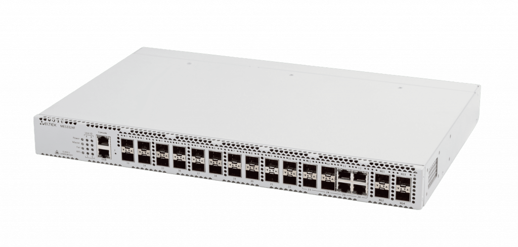MES3324F - коммутатор агрегации, предназначен для использования в операторских сетях в качестве коммутатора уровня агрегации района или транспортного коммутатора. Устройство имеет значительный запас по производительности благодаря универсальным интерфейсам.