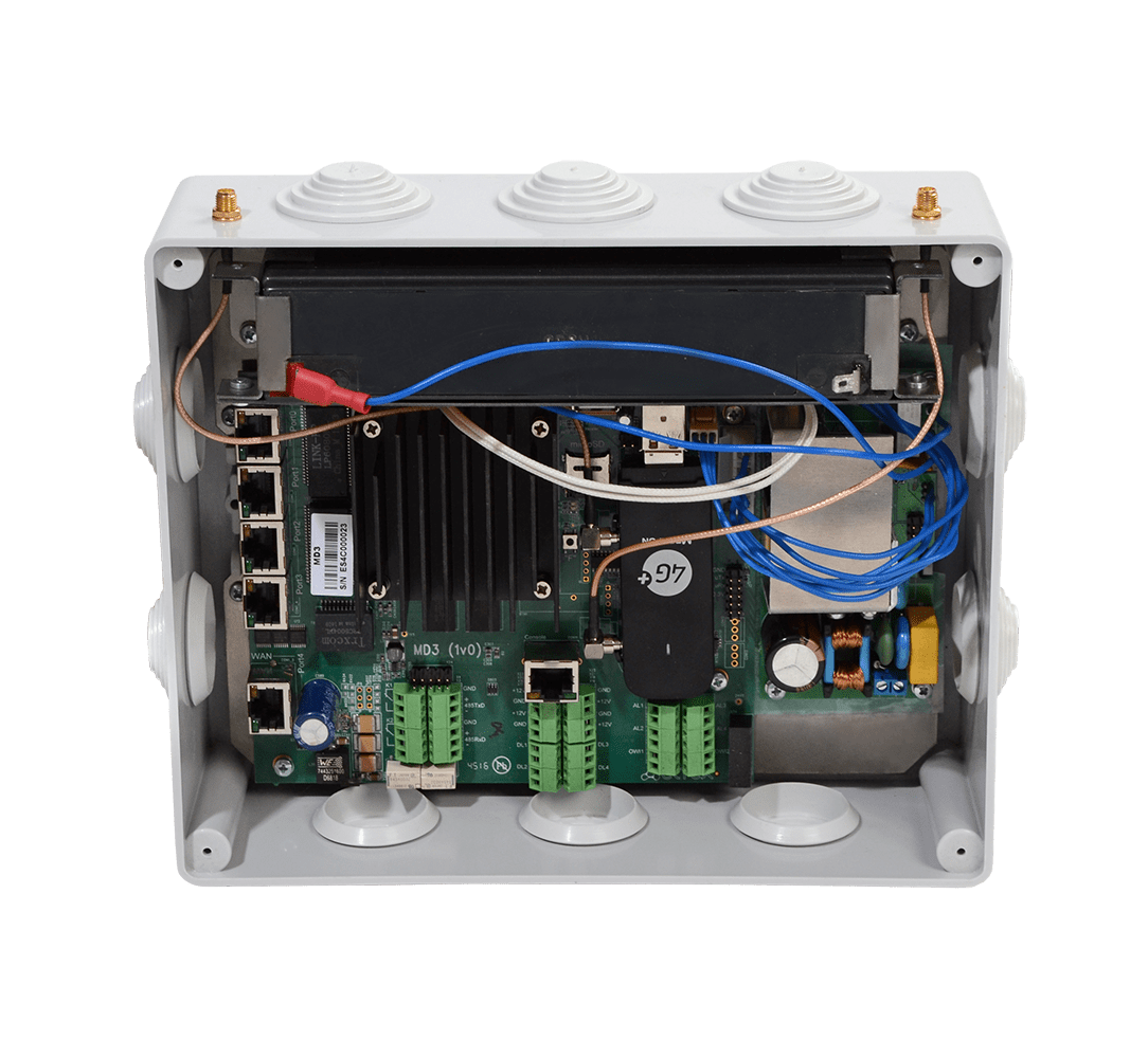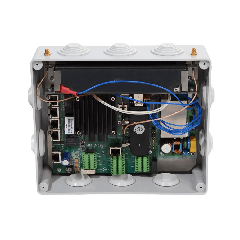 Промышленный контроллер MD3 предназначен для создания системы мониторинга объектов, сбора технологической информации и передачи ее во внешнюю платформу управления и мониторинга. Устройство обеспечивает контроль и сбор информации с датчиков и оборудования, установленного на объекте мониторинга, через сухие контакты, интерфейс RS-485, Ethernet, 1-wire с возможностью сохранения информации на SD-карте: подключение датчиков движения, открытия/закрытия двери; подключение аналоговых датчиков (охранной, пожарной сигнализации); подключение датчиков температуры; подключение электросчетчиков; подключение IP-камер; подключение стороннего оборудования с возможностью мониторинга его состояния и обеспечения удаленного доступа.