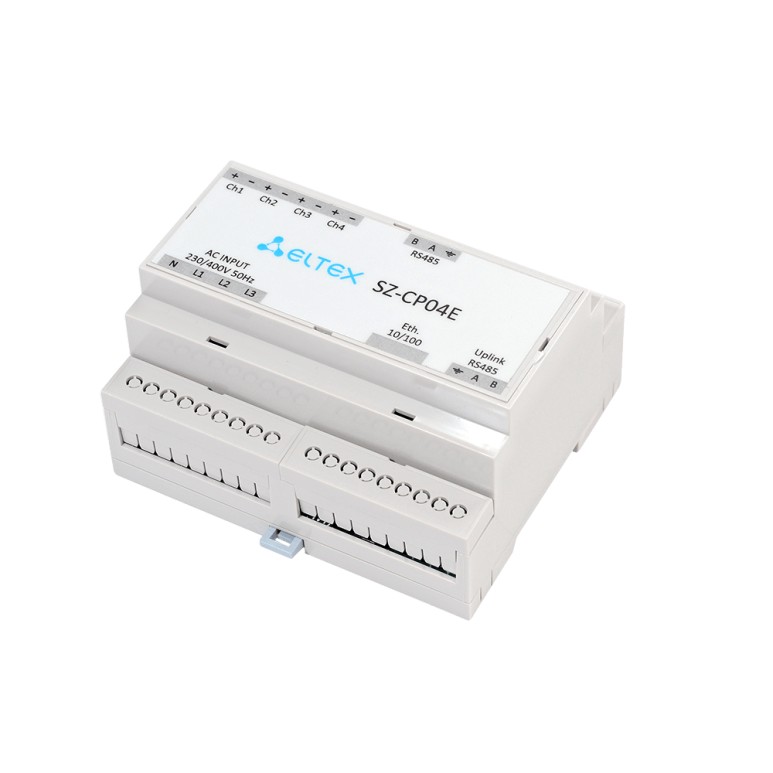 SZ-CP04EС – контроллер беспроводной сети «Умный дом» со встроенным регистратором потребления электроэнергии от приборов учета с импульсным выходом. Позволяет собирать данные с регистраторов SZ-P04C и SZ-W02 по беспроводному каналу и передавать их в платформу Eltex SC.