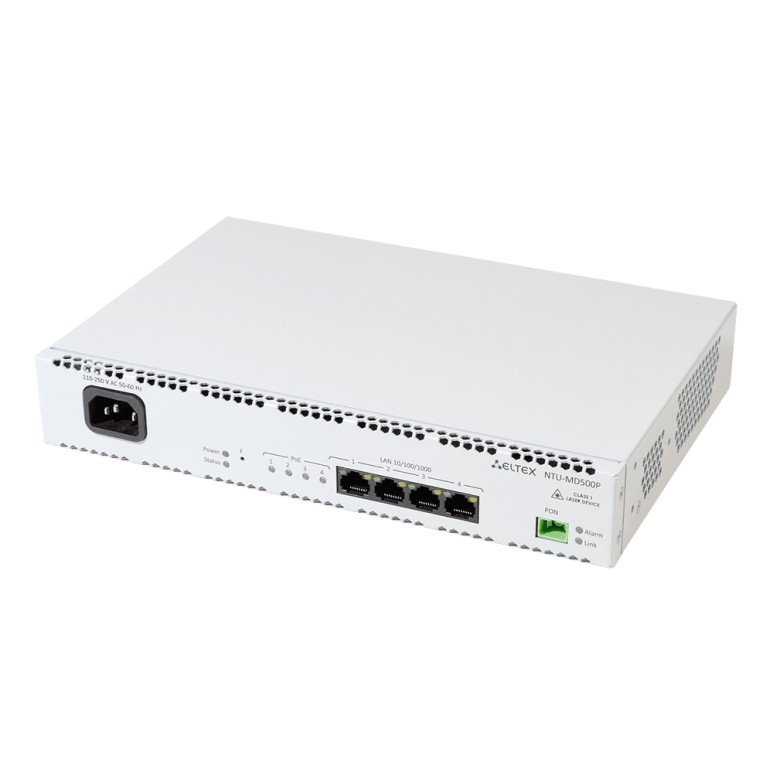 NTU-MD500P — оптические сетевые терминалы, которые имеют 4 порта 10/100/1000BASE-T с под-держкой стандарта IEEE 802.3at PoE+. Терминалы NTU-MD500P обеспечивают мощность до 30 Вт на портах 10/100/1000BASE-T с бюджетом мощности PoE — 65 Вт.
