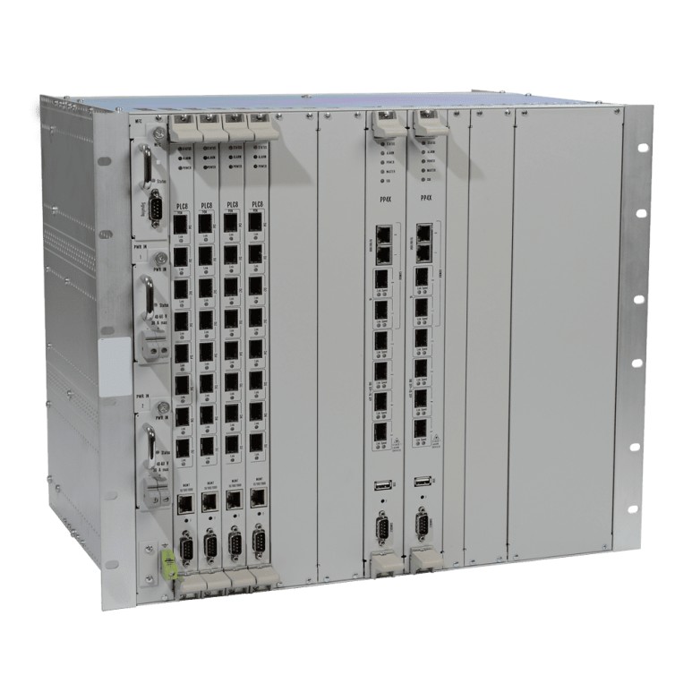 Модули устанавливаются в стандартный 19” евро-конструктив 9U. В корпусе предусмотрены два слота для установки управляющих модулей коммутатора PP4X и 16 слотов для установки линейных модулей PLC8 (GPON). В системе может присутствовать один или два модуля центрального коммутатора PP4X. Установка двух модулей позволяет построить высоконадежную систему за счет резервирования коммутаторов и увеличить пропускную способность системы за счет распределения потоков данных между модулями путем их стекирования. Взаимодействие между модулями происходит через 10 Гбит/с соединения.