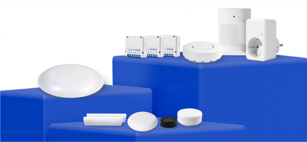 - Сервис «Контроль» – мониторинг параметров среды, оповещение об авариях в системе и пожаре на начальном этапе. Устройства: Z-Wave датчики контроля температуры и влажности SZ-AIR-HT01, протечки SZ-WLK, дыма SZ-SMK.